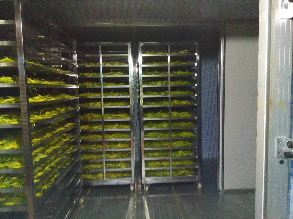 將擺放好黃花菜的物料車推入烘干房?jī)?nèi),設(shè)定好烘干時(shí)段,溫度,排濕量,啟動(dòng)設(shè)備進(jìn)行烘干。